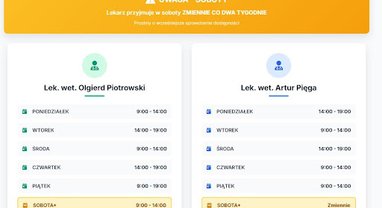 Doświadczony zespół, któremu zaufali mieszkańcy Częstochowy od ponad 20 lat! Przychodnia Weterynaryjna "Animal" to miejsce stworzone z pasji do zwierząt. Od dwóch dekad oferujemy kompleksową opiekę weterynaryjną dla psów, kotów, gryzoni i innych zwierząt towarzyszących. Nasz zespół, kierowany przez specjalistę chirurga Olgierda Piotrowskiego oraz doświadczonego lekarza Artura Piegę, łączy profesjonalizm z empatią i nowoczesnymi metodami leczenia. Co nas wyróżnia? Specjalistyczna chirurgia: Wykonujemy zaawansowane zabiegi chirurgiczne. Nowoczesna diagnostyka: Posiadamy sprzęt pozwalający na szybkie i trafne diagnozowanie. Pełne zaangażowanie: Do każdego pacjenta podchodzimy indywidualnie, co potwierdzają setki pozytywnych opinii naszych